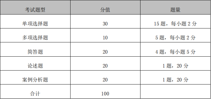 多项选择 10%,简答题 20%,论述题 20%,案例分析题 20%。