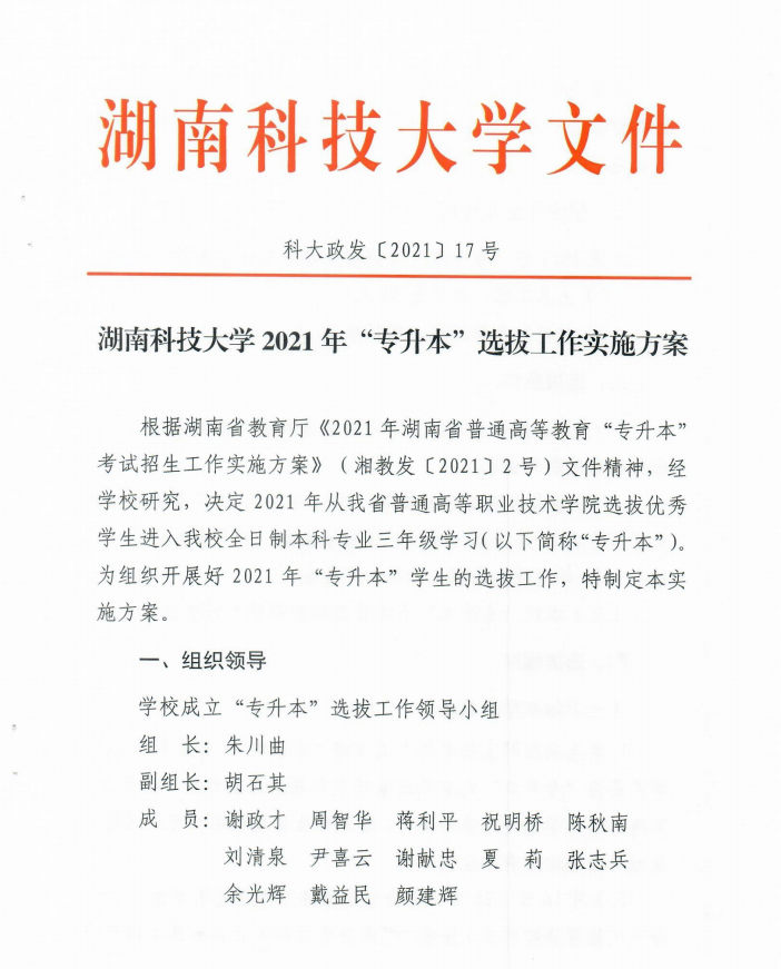 根据湖南省教育厅《2022年湖南省普通高等教育专升本考试招生工作实施方案》(湘教发〔2022〕3号)文件精神,经学校研究,决定2022年从我省普通高等职业技术学院选拔优秀学生进入我校全日制本科专业三年级学习(以下简称“专升本”)。为组织开展好2022年“专升本”学生的选拔工作,学校依据教育部颁布的本年度《教育部关于做好普通高校招生工作的通知》和《普通高等学校招生工作规定》,全面贯...